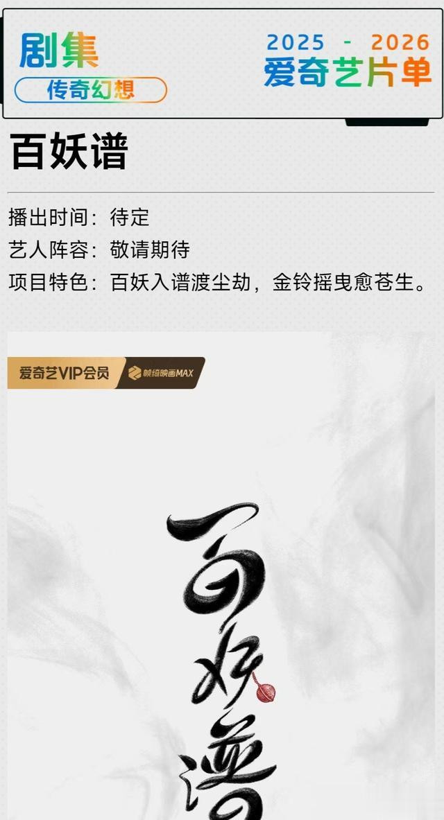 《百妖谱》还计划改编成真人剧了,在爱奇艺的2025-2026年度片单中出现了,